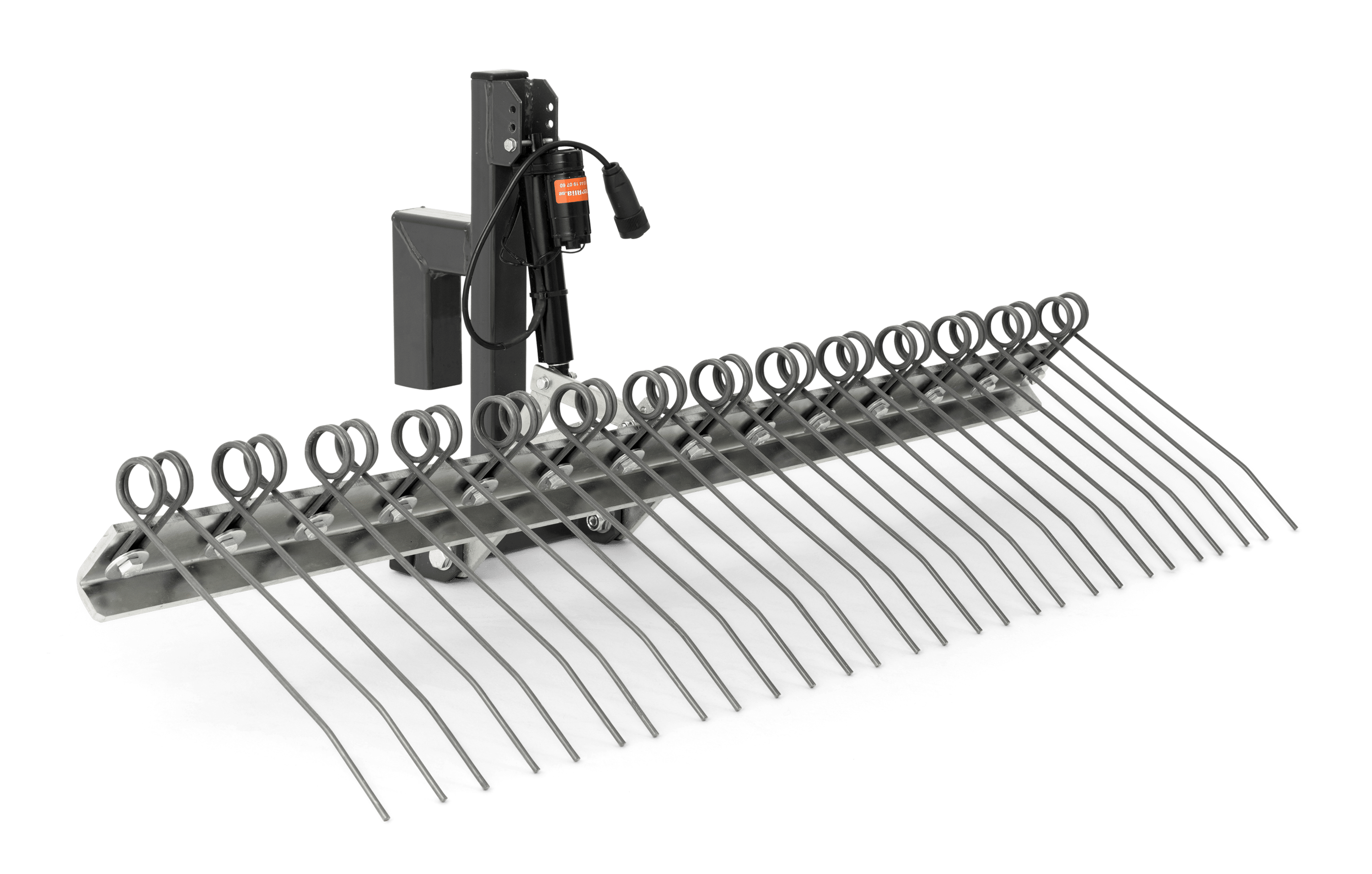 K použití spolu s bránami na štěrk pro srovnání štěrku a sbírání plevele. Elektrické nastavení výšky činí tyto hrábě efektivní, ergonomické a snadné k použití.
