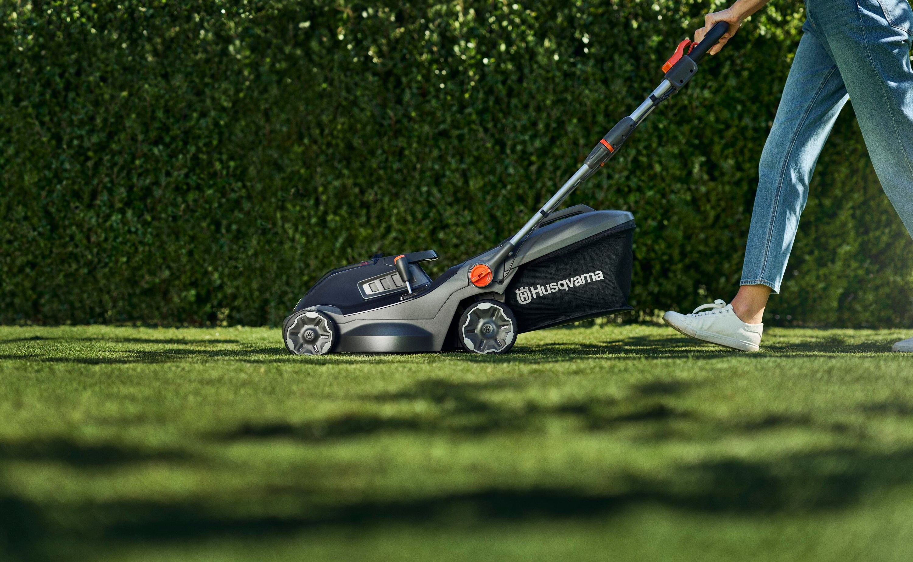 Elegantní černý design řady Husqvarna Aspire™ je doplněn oranžovými detaily, které vás intuitivně navedou ke všem interakčním místům. Vylepšená ergonomie, jako jsou nastavitelné rukojeti, a robustní materiály vám pomohou snadno zvládnout jakýkoli zahradní projekt.