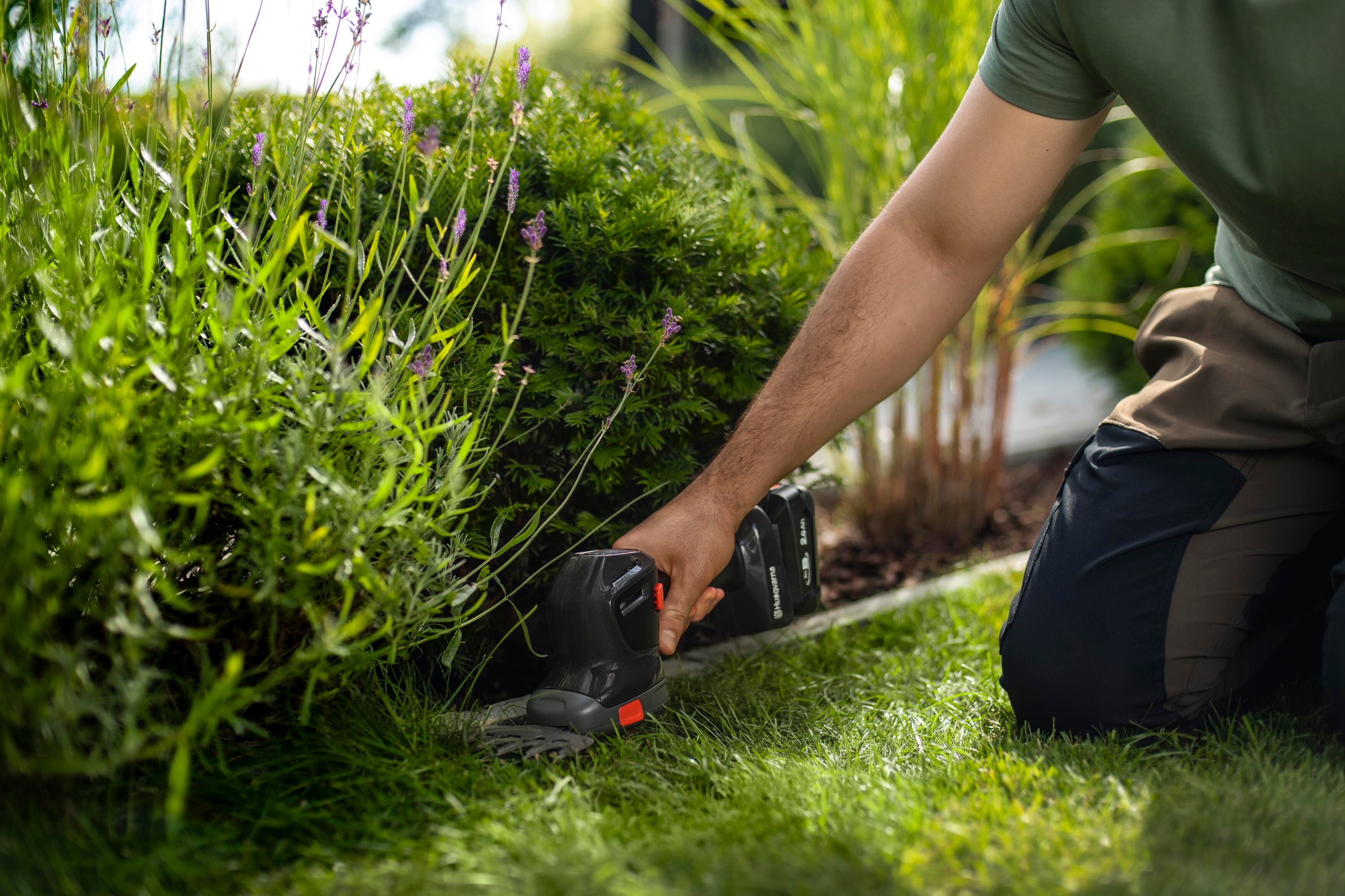 Multi-functional precision through high cutting speed and accessories for grass trimming and shaping of bushes and hedges.