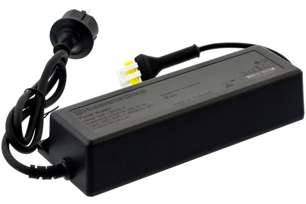Originální napájecí jednotka Husqvarna pro nabíjecí stanici robotické sekačky na trávu. Pro optimální účinnost nabíjení a bezpečnou instalaci robotických sekaček.