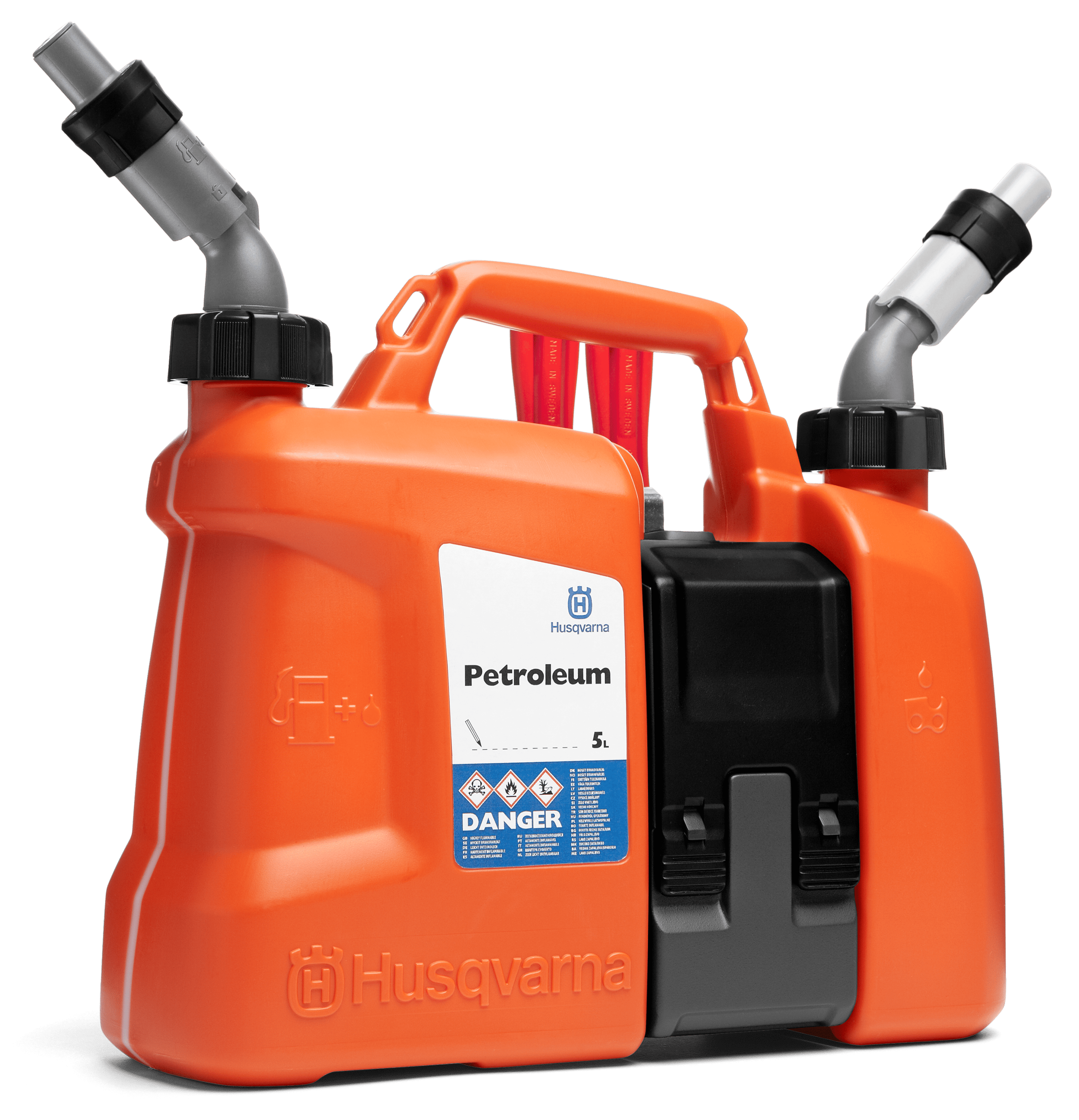 Náš inovovaný kanystr Combi umožňuje rychle doplnit palivo beze ztrát. Rozměry obou kanystrů byly navrženy tak, aby odpovídaly optimálnímu poměru paliva a řetězového oleje (5 l/2,5 l ) . Tento nový kanystr Combi má zabudovanou přihrádku pro často používané nářadí a náhradní díly, které potřebujete k práci. Schváleno v souladu s doporučeními OSN.Parametry produktu