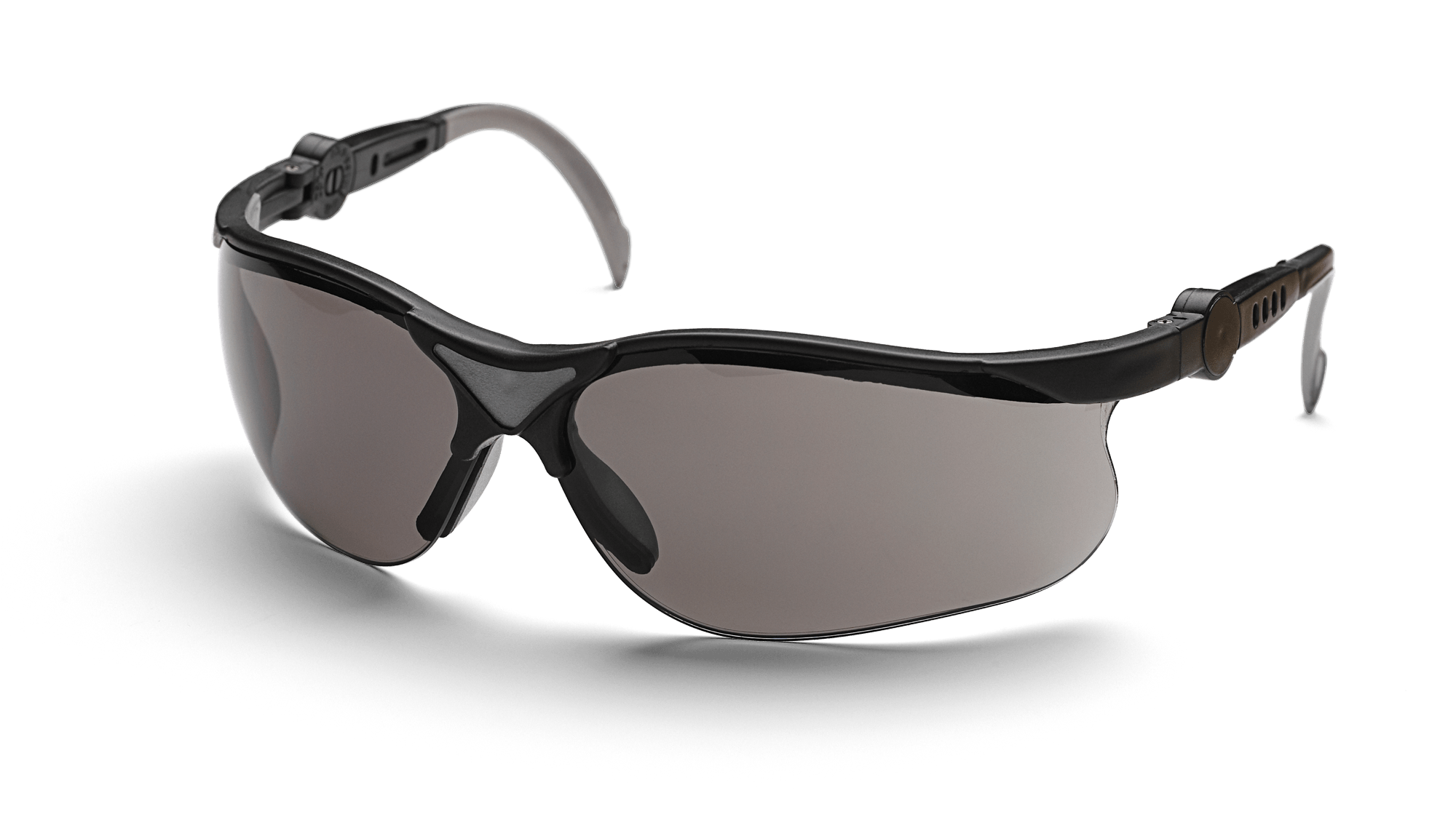 Ochranné brýle s ochranou proti poškrábání a do šeda zabarvenými skly s ochranou proti UV paprskům pro lepší viditelnost při slunečném počasí. Obroučky brýlí mohou být prodlouženy a skla nakloněna. Splňují požadavky EN 166, ANSI Z87+.