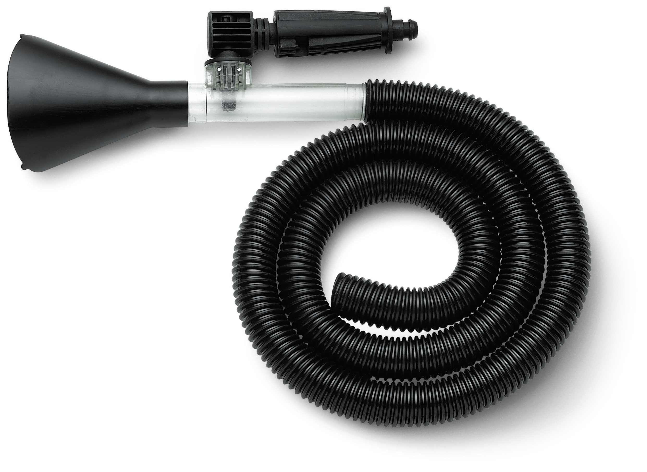 Při použití sací trysky se změní váš vysokotlaký čistič na čerpadlo pro odsávání většího množství povrchové vody, například při vypouštění bazénu nebo při čištění terasy. Určeno pro vysokotlaké čističe řad 100-300.
