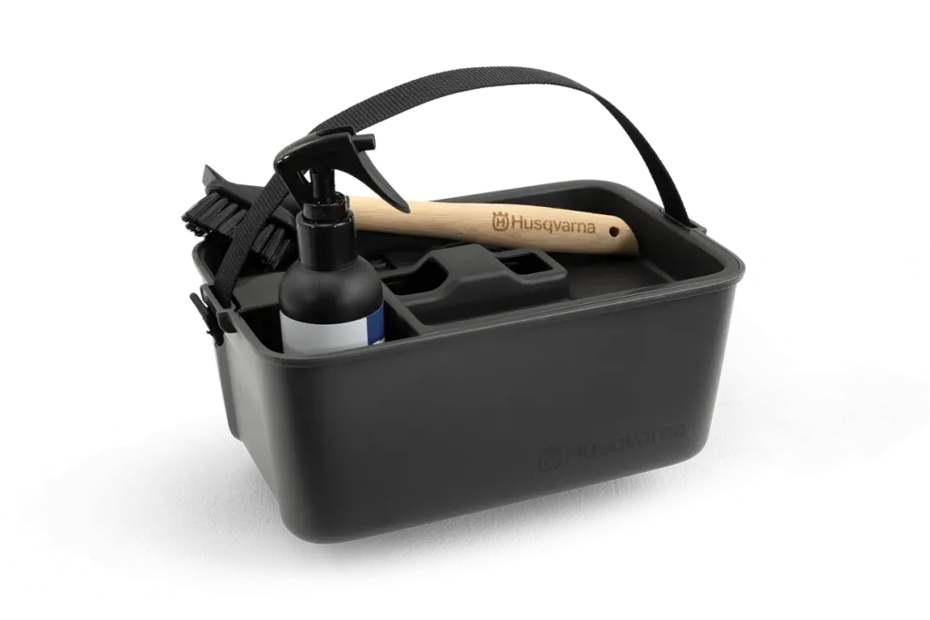 Sada na údržbu a čištění usnadňuje udržování sekačky Husqvarna Automower® v dokonalém stavu. Tato sada obsahuje vše potřebné k odstranění trávy a nečistot z robotické sekačky a jejímu čištění během sezóny. Sada obsahuje dva kartáče, malý na úzké a špatně přístupné povrchy a velký, který lze použít v kombinaci s hadicí. Aktivní čistič ve spreji od společnosti Husqvarna se snadno používá, velmi účinně odstraňuje nečistoty a je jak bezfosfátový, tak biologicky rozložitelný. Speciální přihrádky v boxu zjednodušují skladování a uspořádání základních potřeb, jako jsou nástroje a břity.Parametry produktu