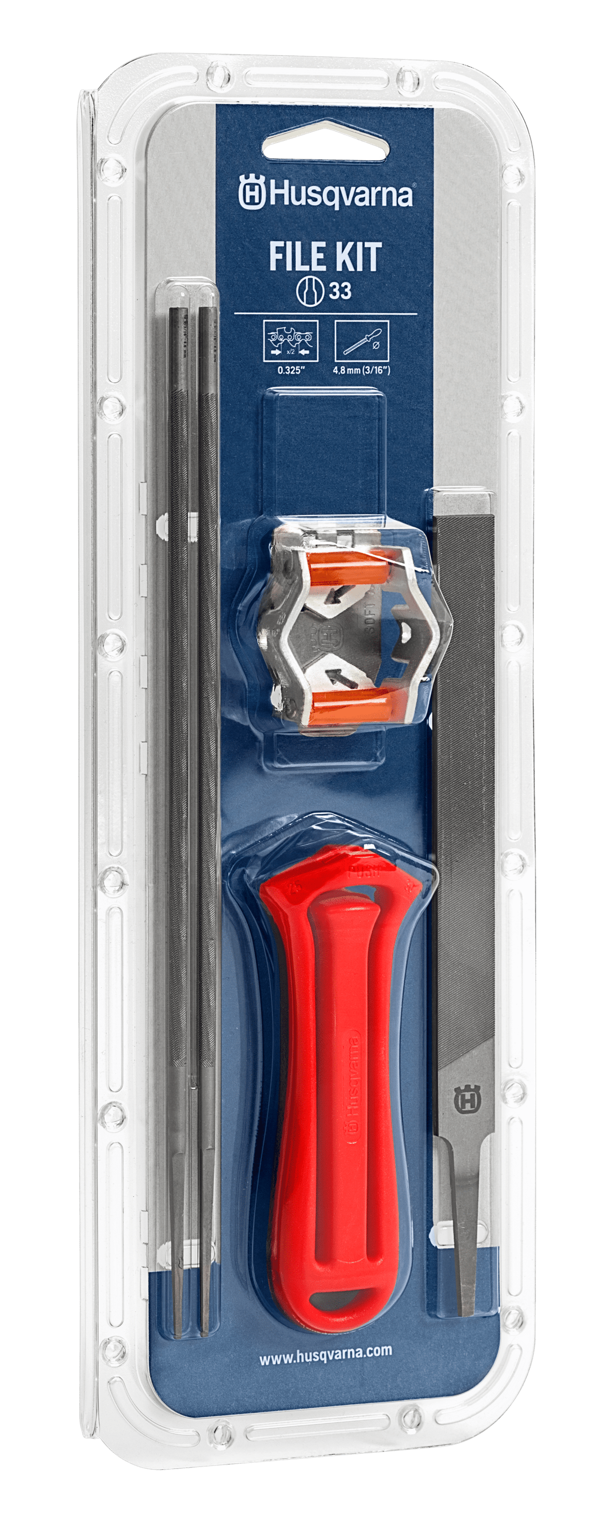 Kompletní sada na ostření řetězů pro snadné udržování stále nabroušeného řetězu. Se správně nabroušeným řetězem bude vaše práce snadnější a bezpečnější. Sada obsahuje rukojeť pilníku, kombinované vodítko nebo vodítko pro ostření a měrku pro snížení omezovacího zubu, dva kulaté pilníky a jeden plochý pilník.Parametry produktu