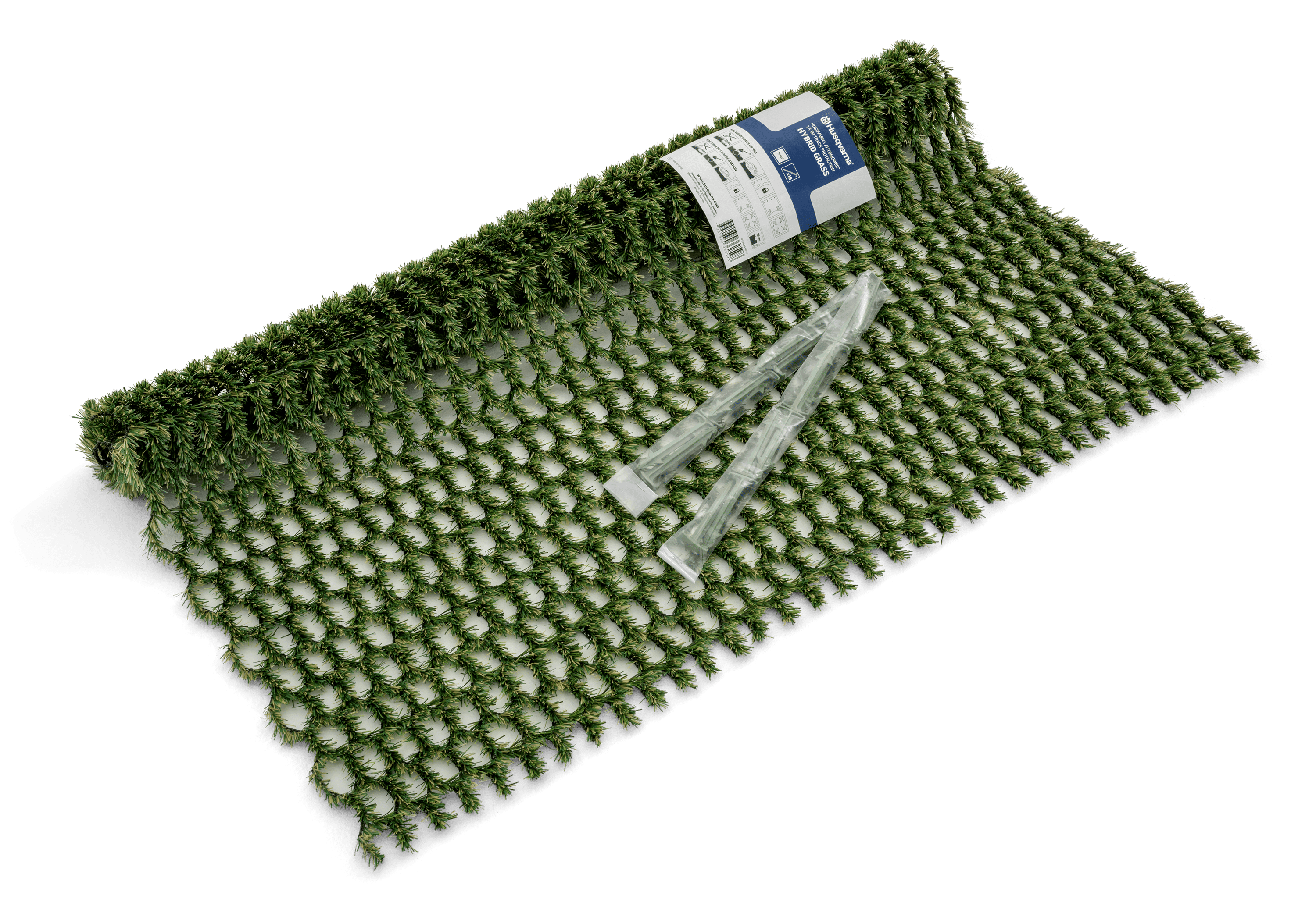 Hybridní trávník ummožňuje robotické sekačce snadnější a efektivnější sekání v úzkých místech a menších plochách. Zabraňuje zastavení robotické sekačky, otáčení na místě a opotřebení trávníku na svazích nebo často sekaných místech, kde jsou omezené možnosti změny vzdálenosti od ohraničujícího vodiče. Umělá tráva 1x1 metr včetně 16 zelených kolíků.Parametry produktu